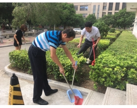 为迎接全国文明城市实地考评,9月22日上午,体育学院利用课间操时间,组织各科室行政人员到陈伟利体育馆周边绿化带、二楼平台等地进行卫生大扫除。他们不怕脏、不怕累,深入绿化带中捡烟头、废纸、废塑料袋。