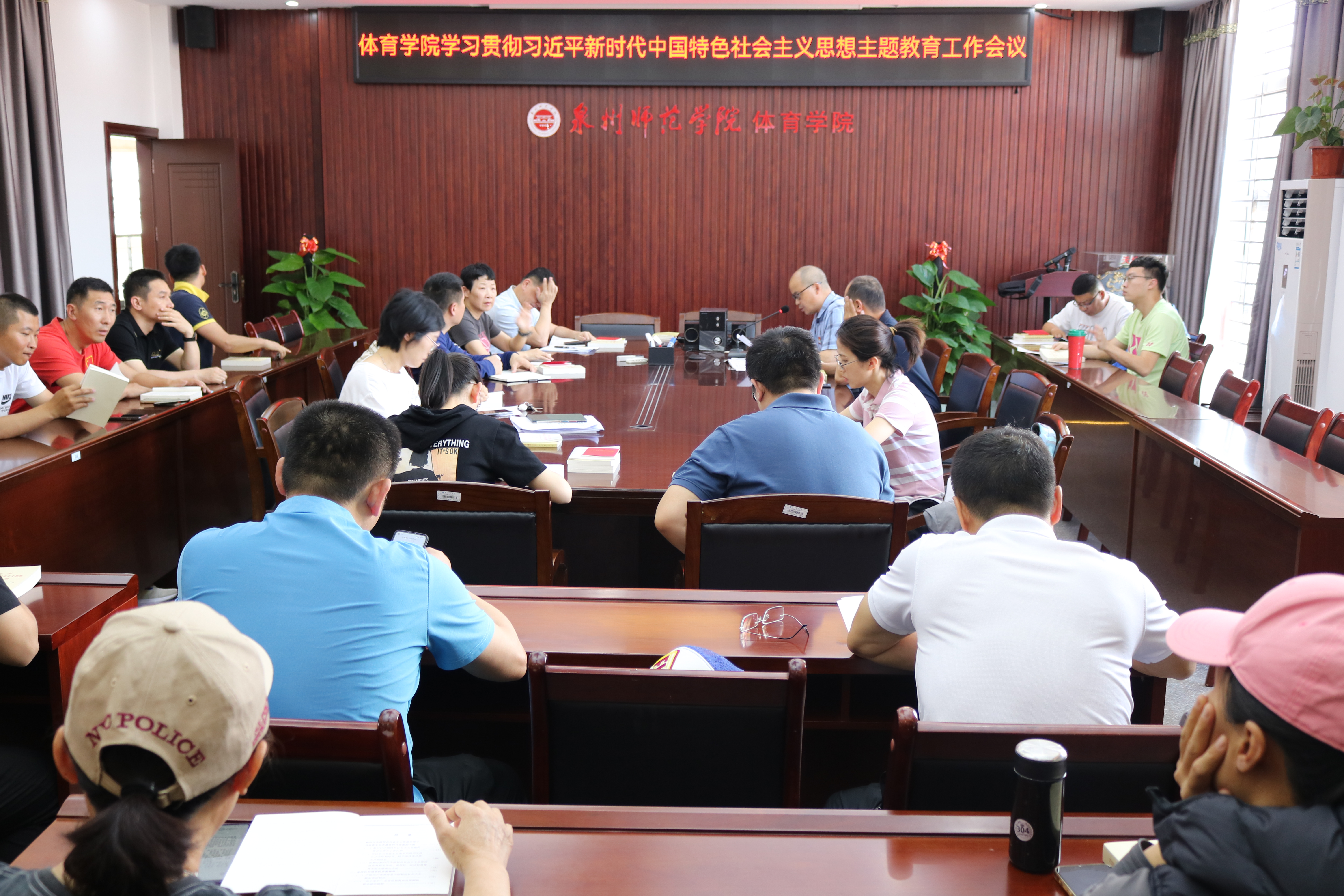 4月27日下午,体育学院召开学习贯彻习近平新时代中国特色社会主义思想主题教育工作会议。学院党委正处级干部董清海作动员部署,会议由学院党委副书记、纪委书记李遵义主持,体育学院全体党员参加会议。