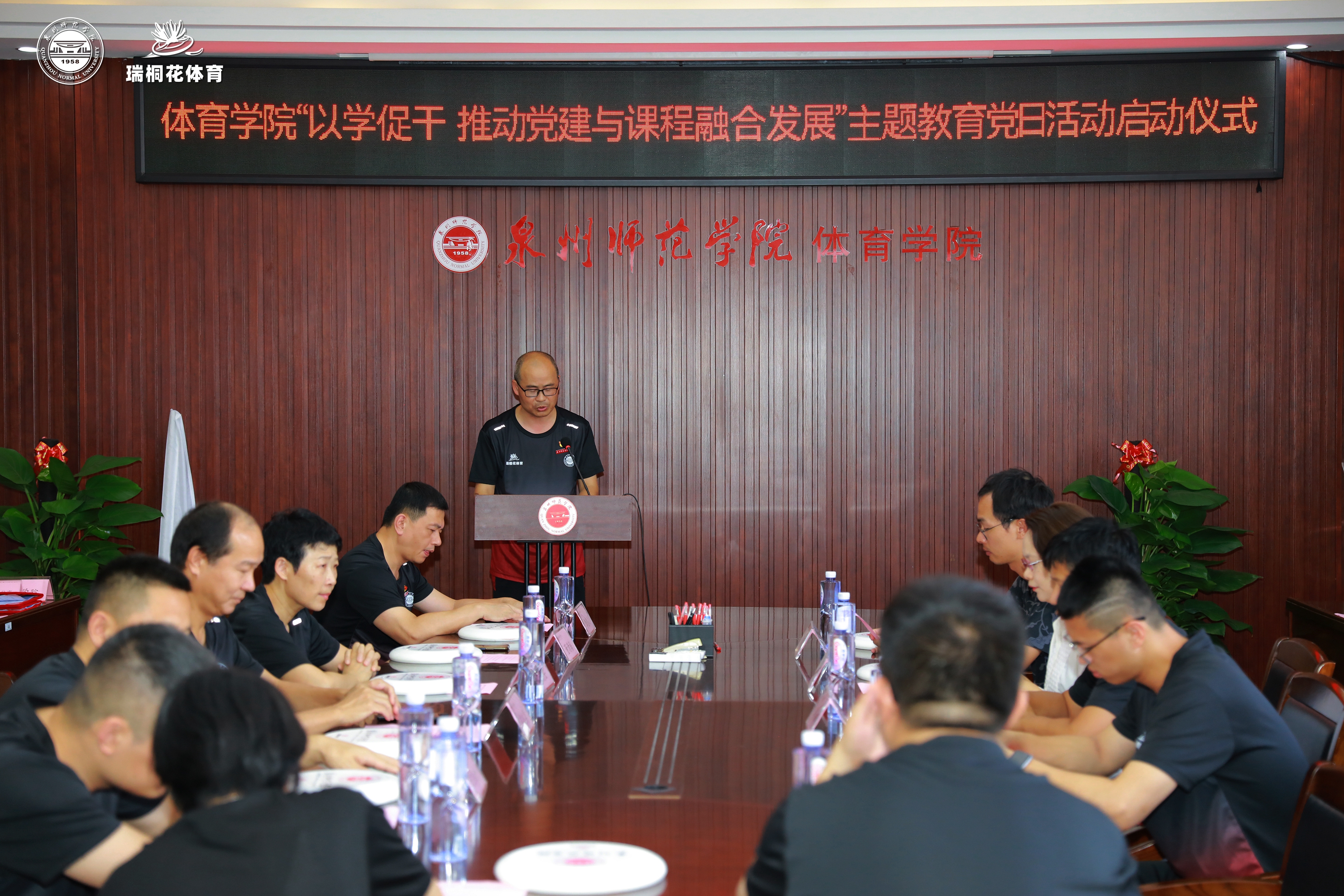 为深入开展学习贯彻习近平新时代中国特色社会主义思想主题教育,加强党建与课程共融共建,落实立德树人根本任务,6月20日下午,体育学院举行“以学促干 推动党建与课程融合发展”主题教育党日活动启动仪式,体育学院班子、教工第二党支部和其他支部的党员教师骨干、瑞桐花体育公司董事长、总经理及教练等相关人员参加了活动。