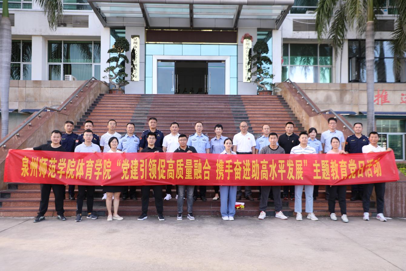 为深入推进学习贯彻习近平新时代中国特色社会主义思想主题教育,进一步学习贯彻党的二十大精神和庆祝中国共产党成立102周年,6月28日下午,“七一”来临之际,体育学院与泉州市公安局人民警察训练学校开展主题为“党建引领促高质量融合 携手奋进助高水平发展”联学共建主题教育党日活动,体育学院全体党务工作者、教师党员代表,泉州市公安局人民警察学校全体党员共同参加活动。