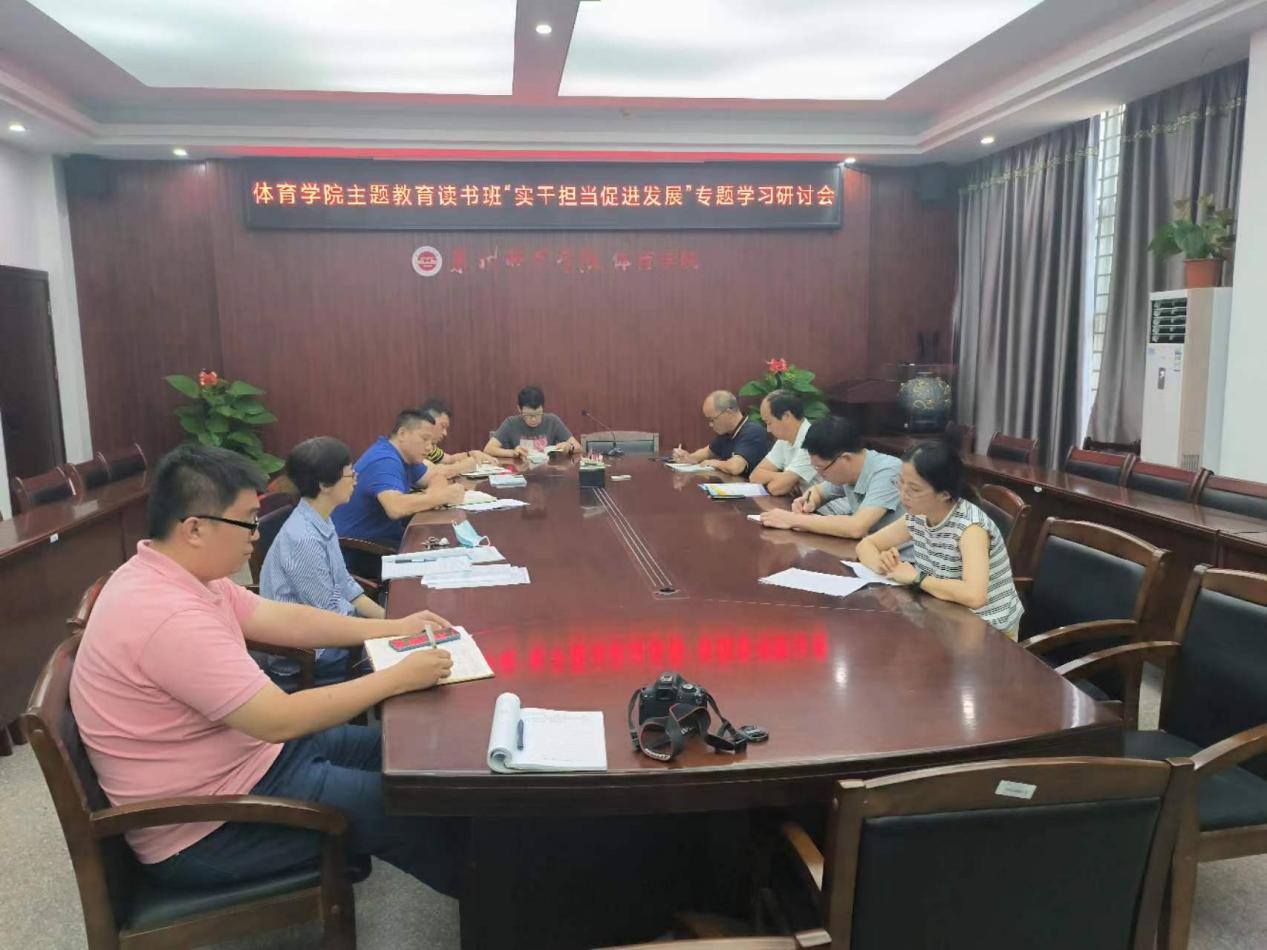 6月29日下午,体育学院主题教育读书班“实干担当促进发展”专题学习研讨会在陈伟利体育馆201会议室举行。会议由董清海主持,党委班子成员、党委委员、办公室主任、教务科研办副主任、学工办主任兼团委会书记、党委组织员、各党支部书记和各专业主任参加会议。学院党委班子成员联系学习和工作实际,围绕“实干担当促进发展”开展专题学习研讨,体育学院长许月云作重点发言,其他党委班子成员作交流发言。