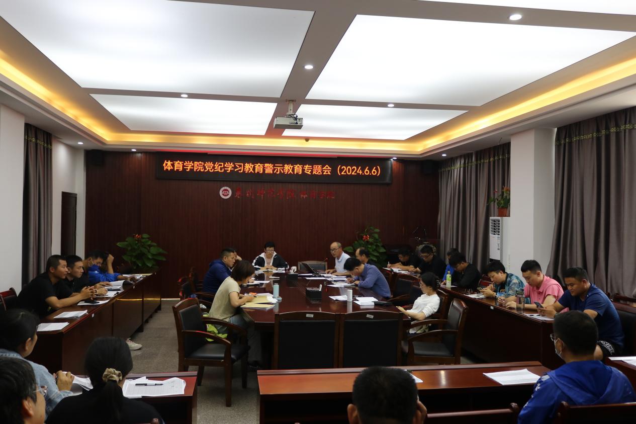6月6日下午,体育学院党委在陈伟利体育馆二楼会议室召开党纪学习教育警示教育会。体育学院党委董清海主持会议,体育学院全体党员参加会议。