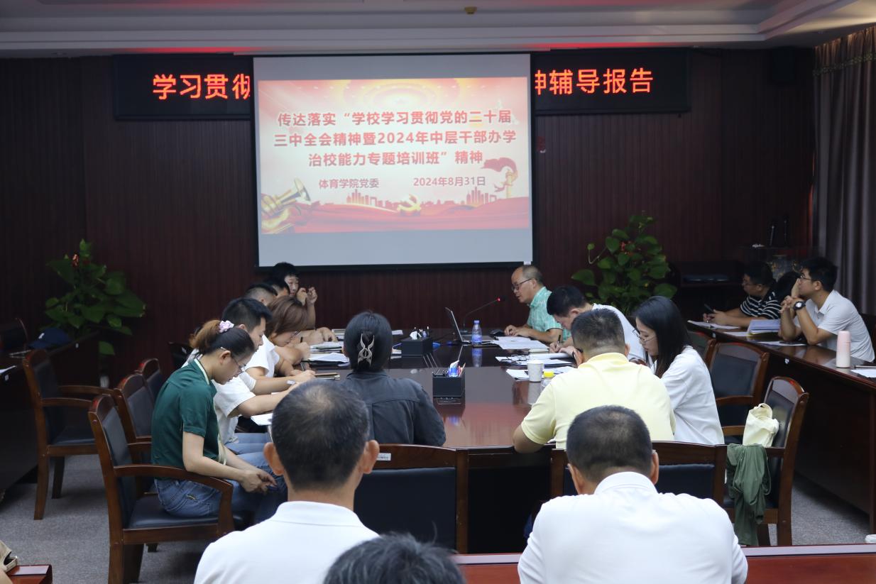 【争优 争先 争效】体育学院召开传达落实“学校学习贯彻党的二十届三中全会精神暨2024年中层干部办学治校能力专题培训班”精神会议