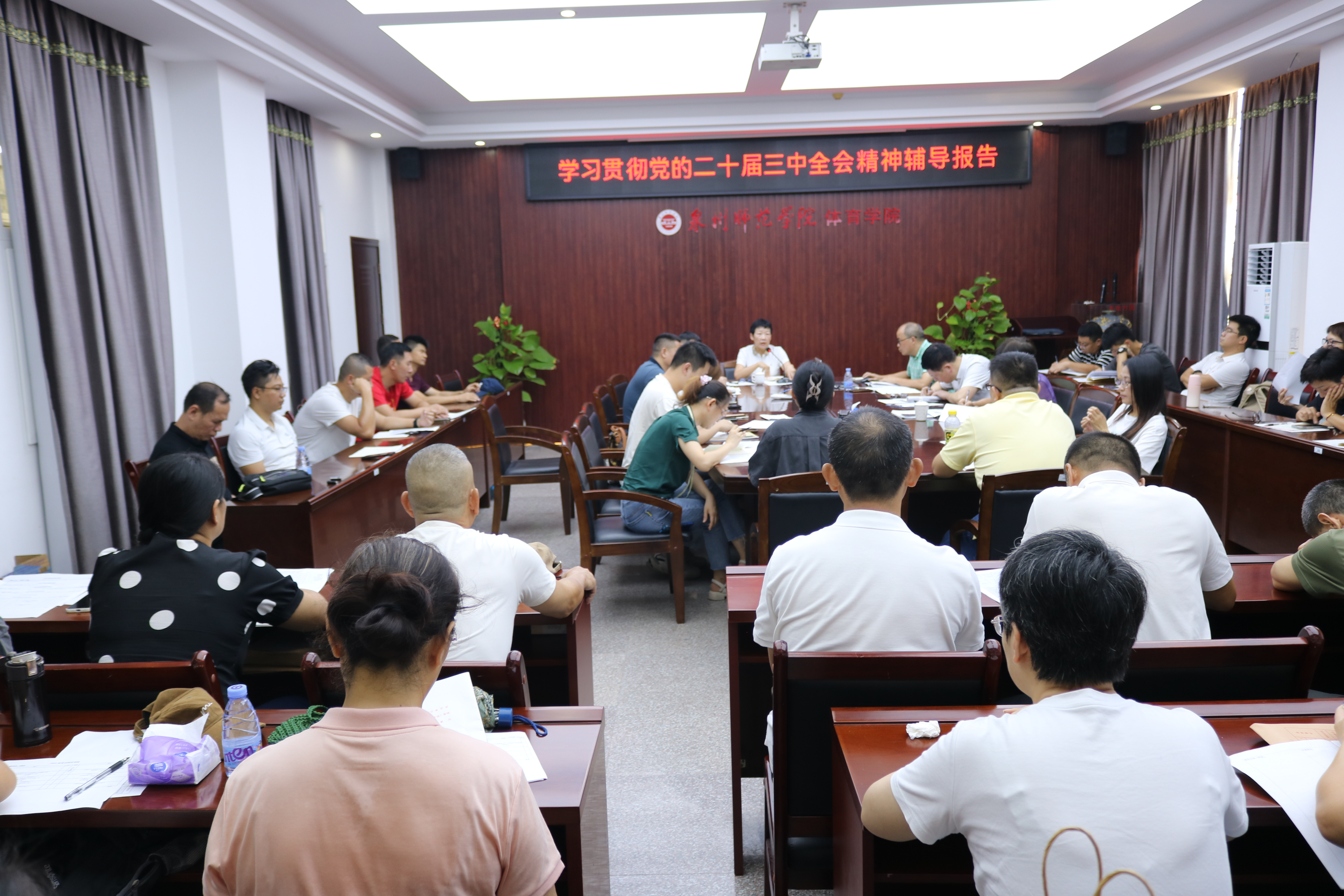 为深入学习宣传贯彻党的二十届三中全会精神,持续深入学习贯彻习近平新时代中国特色社会主义思想,巩固拓展主题教育成果,进一步推动党纪学习教育走深走实,切实把全院教师思想行动统一到党的二十届三中全会精神上来,把智慧力量凝聚到党的二十届三中全会确定的各项任务上来,8月31日上午,体育学院召开学习宣传贯彻党的二十届三中全会精神专题会议,体育学院全体教师参会,会议由院长、党委副书记许月云主持,党委董清海做学习贯彻党的二十届三中全会精神辅导报告。