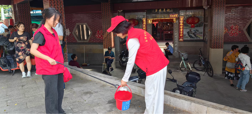 每日上午,志愿者们在蟳埔游客服务中心集合并签到。志愿者们身着统一的服装,手持导引标识牌,协警将志愿者们分为五个小组,分别值守在游客中心服务台、妈祖庙、中路、蟳埔石碑、渔人码头五个点位。值守各点位的志愿者主动为游客提供必要的帮助,如指路、拍照、讲解等。同时,志愿者们也轮流拿起劳动工具,拾取地上的垃圾,保持景区卫生整洁。值守在渔人码头的志愿者还要随时关注码头边游客动向,劝阻游客不要靠近水边拍照时,注意安全。同时,他们还不忘倡导文明旅游,引导游客遵守景区规定,保护景区环境,共同营造文明、和谐的旅游氛围。