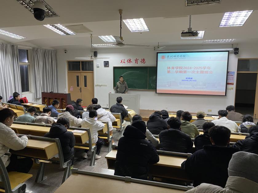 2025年2月16日晚上,体育学院全体辅导员开展“开学安全教育第一课”主题班会,为同学们新学期的学习与生活注入活力,保驾护航。