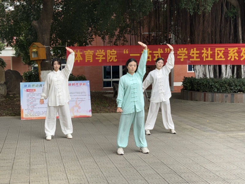 为推动体育文化深度融入校园生活,打造“一站式”学生社区育人新生态,5月25日下午,体育学院在学生宿舍C区开展以“体育燃动青春,文化绽放光彩”为主题的体育文化展示活动。活动中展示了健美操、健身气功、健美、击剑、舞狮等体育项目,吸引宿舍区众多学生驻足参与,现场氛围热烈,成为校园里一道亮丽的风景线。