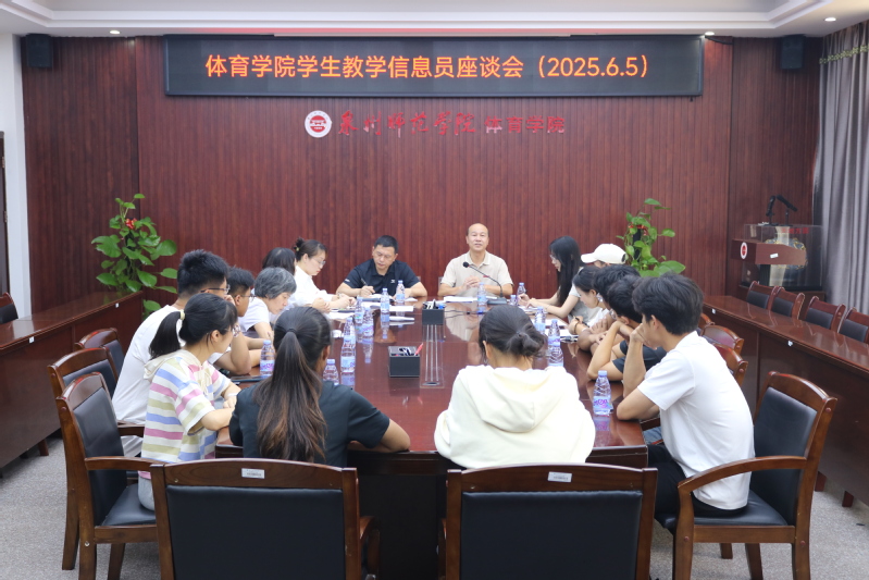6月5日下午,体育学院在陈伟利体育馆201会议室召开学生教学信息员座谈会。党委副书记李遵义、副院长庄志勇、学校教学督导员赖阿莹、黄梅红、曾灿文(学院督导联络员),以及学工办、教学科研办负责人、全体学生教学信息员参加会议。