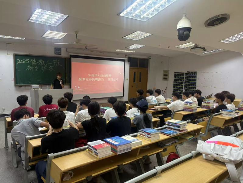 为纪念中国人民抗日战争暨世界反法西斯战争胜利80周年,弘扬伟大的抗战精神,9月14日晚,体育学院在千墅、文科楼等教室组织开展“弘扬伟大抗战精神,凝聚青春挺膺担当”为主题的班会活动。体育学院全体同学参与,通过沉浸式学习与实践,弘扬伟大的抗战精神。