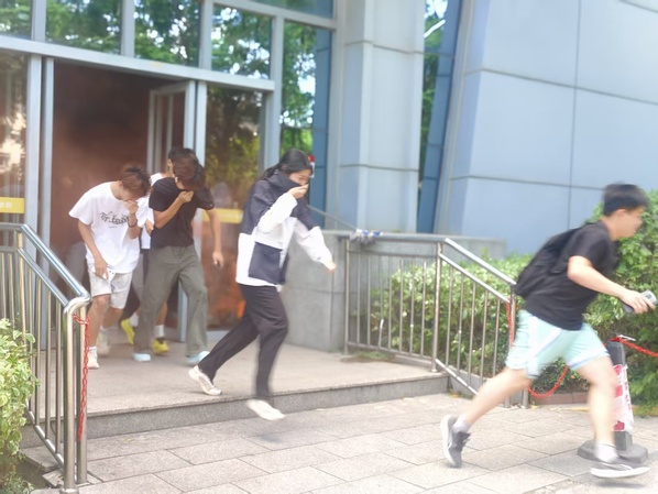 中午12:30,消防警报拉响,演练正式开始。全体人员在疏散引导员指挥下,按照预定路线快速、有序撤离至安全区域,全过程用时不到两分钟。疏散演练结束后,校保卫处洪国祥老师现场讲授火灾预防知识和灭火器操作方法。参演场馆管理人员及师生分批进行实操练习,熟练掌握消防技能。本次演练有效检验了应急预案,提升了师生应急处置能力。学院将持续推进安全教育工作,切实筑牢校园安全防线。