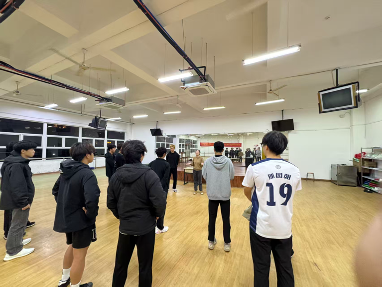 夜幕降临,明德体育馆灯火通明。在24级辅导员白榕老师的指导下,同学们手持长棍,围绕“刺、敲、劈、弹”等核心招式反复锤炼,并结合“八刚十二柔”的要义,不断优化动作连贯性与表现张力。