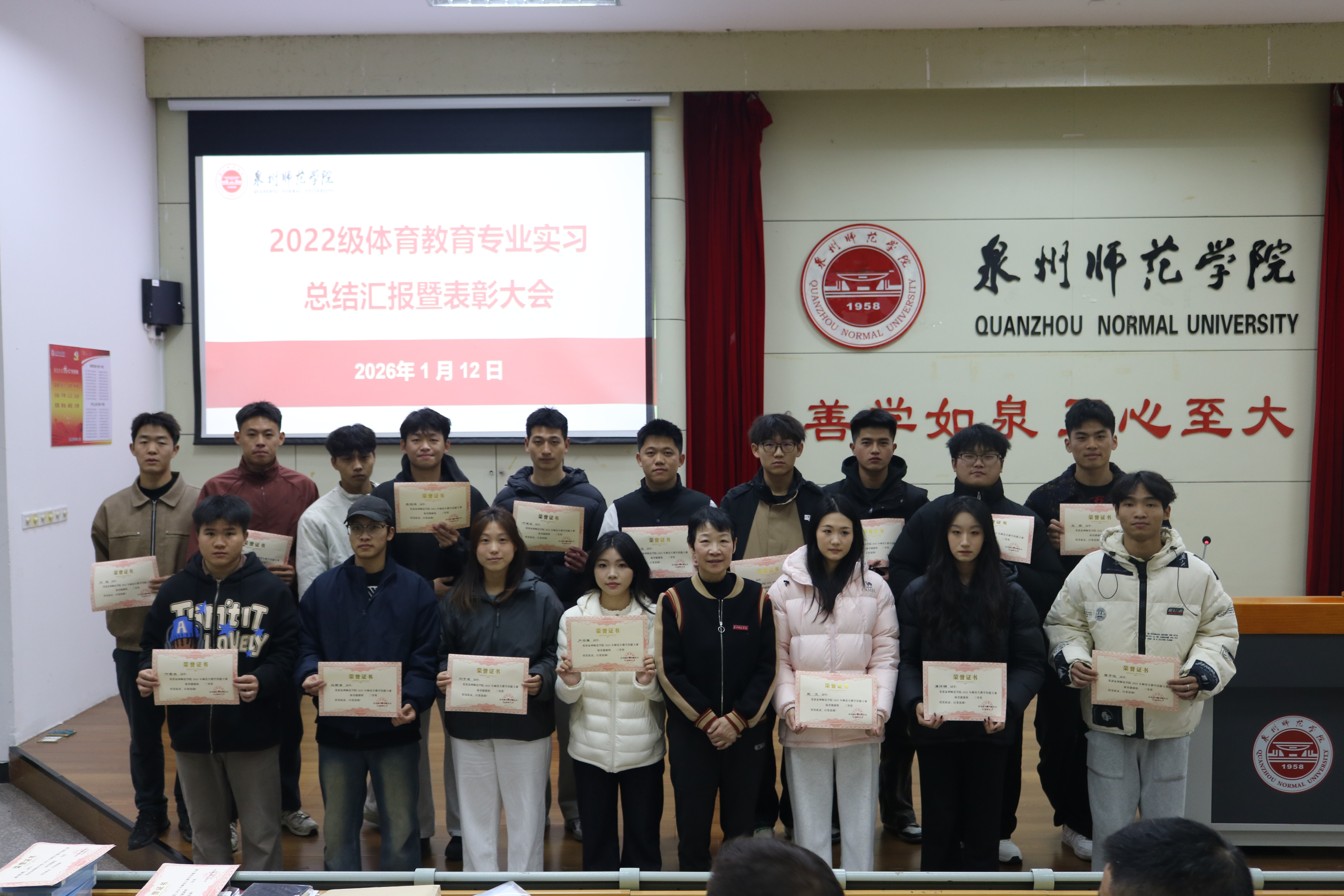 此次总结表彰大会不仅是对2022级教育实习工作的全面回顾与成果展示,更是对全体学子的激励与鞭策。通过实习实践,同学们将理论知识与教学实际深度融合,提升了专业技能与育人素养;表彰先进则进一步营造了崇尚优秀、争当先进的良好氛围。未来,体育学院将继续深化体育教育实习改革,完善实践教学体系,为培养更多高素质体育教育人才奠定坚实基础。(体育学院体育教育专业)
