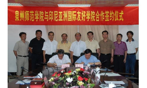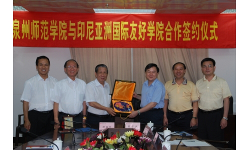 | 2010年6月23日下午,印尼亚洲国际友好学院董事会驻校主任廖章然先生和副主任陈民生先生在省侨办的陪同下专程访问我校,与我校正式缔结姐妹学校友好关系。黄子杰校长、林华东副校长和高云程副校长会见了客人,双方举行了合作签约仪式并进行了座谈。黄子杰校长和廖章然先生代表各自学校在合作框架协议上签字。 由印尼苏北华社慈善与教育联谊会主办的印尼亚洲国际友好学院成立于2008年,主要开设汉语专业,培养当地汉语师资和培训在职汉语教师,在校生800多人。亚洲国际友好学院是目前在海外的唯一一所中文本科大学,是传承中华文化、习俗和教授汉语的平台。 座谈期间,廖章然先生表达了印尼老一代华人想让汉语及中华文化继续在下一代身上传承与发扬光大的殷切希望。同时也诚挚地希望能与我校能在汉语师资与教学上加强合作,推动亚洲国际友好学院发展。通过这次友好交流,两校在汉语教学和对外汉语专业实训等方面达成了合作意向。 外事办、教务处、科研处负责人,以及文学与传播学院、政治与社会发展学院的领导和教师代表参加了签约仪式和座谈。(外事办 许琦红) |