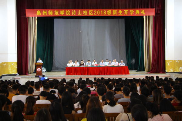 9月11日上午,我校诗山校区2018级新生开学典礼在诗山校区俊秀大礼堂举行。校党委副书记林伟、副校长陈亚兵,党政办、宣传部、统战部、学工部、教务处、后勤处、保卫处、团委会、诗山校区管委会、教育科学学院、应用科技学院等单位负责人和384名专升本新生及来自全国11个省市自治区、22个少数民族的156名预科新生参加了开学典礼。