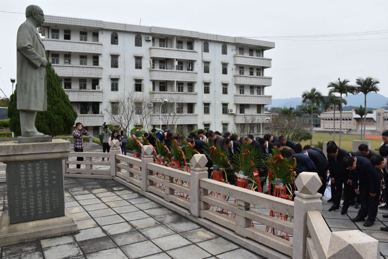 为缅怀华侨先贤、弘扬华侨精神,4月2日上午,我校诗山校区管委会会同南安市委、市政府在诗山校区俊园举行向陈水俊先生雕像敬献花篮仪式。南安市委、市人大、市政府、市政协领导及我校诗山校区管委会、应用科技学院领导、少数民族预科班学生和教师代表等各界人士130余人参加。仪式由南安市副市长李少敏主持。