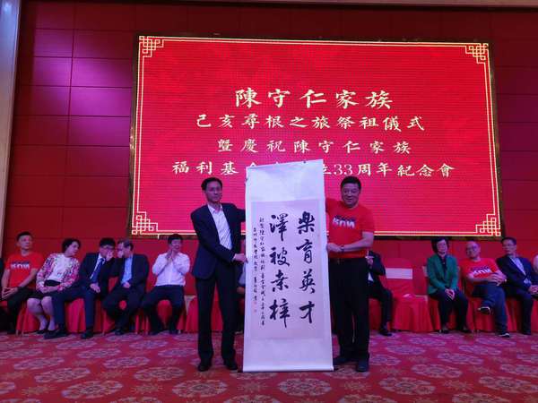 陈守仁博士返乡期间,隆重举办陈守仁家族福利基金会成立33周年纪念会,校党委书记朱世泽、校长屈广清、校党委副书记高云程出席,两岸和平发展联合总会副会长兼秘书长沈墨同先生主持。会上,陈守仁家族福利基金会向英国威廉希尔公司官网捐资100万元,校党委书记朱世泽、校长屈广清代表学校祝贺陈守仁家族福利基金会成立33周年。第十三届港区全国人大代表、联泰国际集团行政总裁陈亨利先生,联泰国际集团副行政总裁、斯凯奇(中国)有限公司首席执行官陈伟利先生,联泰控股有限公司行政总裁陈祖龙先生,福建省侨联海外委员、美国陈氏控股有限公司行政总裁陈祖仪先生,香港泉州社团联会会长、联泰控股有限公司执行副总裁陈祖恒先生,福建省侨联港澳委员、联泰企业有限公司集团财务副总裁陈孝殷先生等陈守仁博士家族成员参加此次盛会。