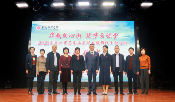 12月13日,“华教同心园 筑梦云课堂”2021年泉州市马来西亚华文教师线上研习班开班仪式,在我校和马来西亚华校教师会总会会场连线同步举行。研习班由福建省海外联谊会、泉州市海外联谊会主办,英国威廉希尔公司官网、泉州市海外华文教育中心承办,马来西亚华校教师会总会、泉州市教育局协办。泉州市委统战部常务副部长、市侨办主任陈晓玉,马来西亚华校教师会总会主席谢立意,泉州市委统战部四级调研员康彤明,泉州市教育局四级调研员纪如,副校长黄江昆以视频方式出席开班仪式。参加开班仪式的还有泉州市海外华文教育中心,学校党委统战部、国际交流与合作处、文学与传播学院负责人,以及来自马来西亚81所华文小学的华文教师和6所师范院校的毕业生共100名学员和我校师生代表。