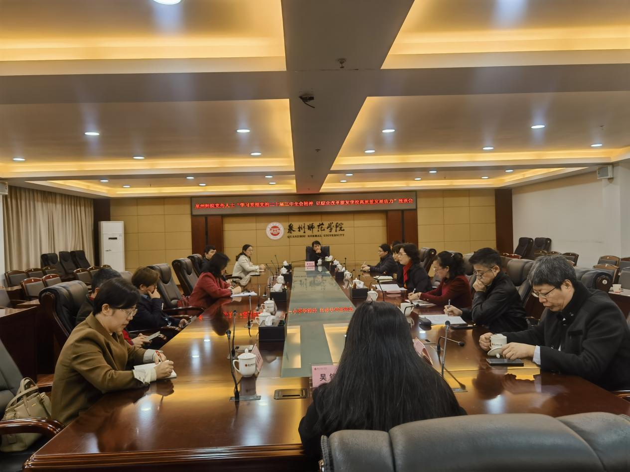 12月17日,我校召开党外人士“学习贯彻党的二十届三中全会精神 以综合改革激发学校高质量发展活力”座谈会。各民主党派基层组织、统战团体代表,党委组织部、教师工作部有关负责人出席会议,会议由党委统战部部长吴雪萍主持。