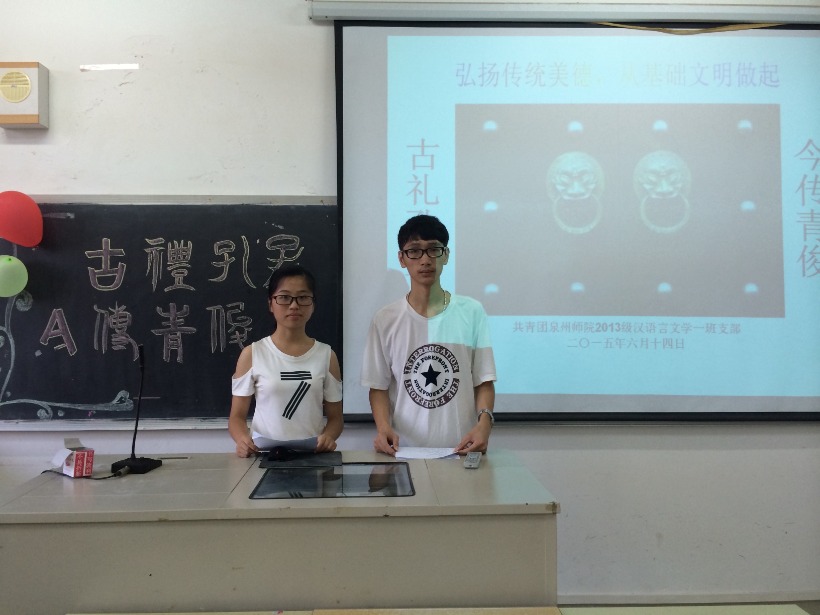 为倡议同学们弘扬传统美德,树立健康向上的价值观念。我院各班级积极响应校团委、院团委号召,于6月14日晚在俊秀东楼召开“弘扬传统美德,从基础文明做起”的主题班团日活动。