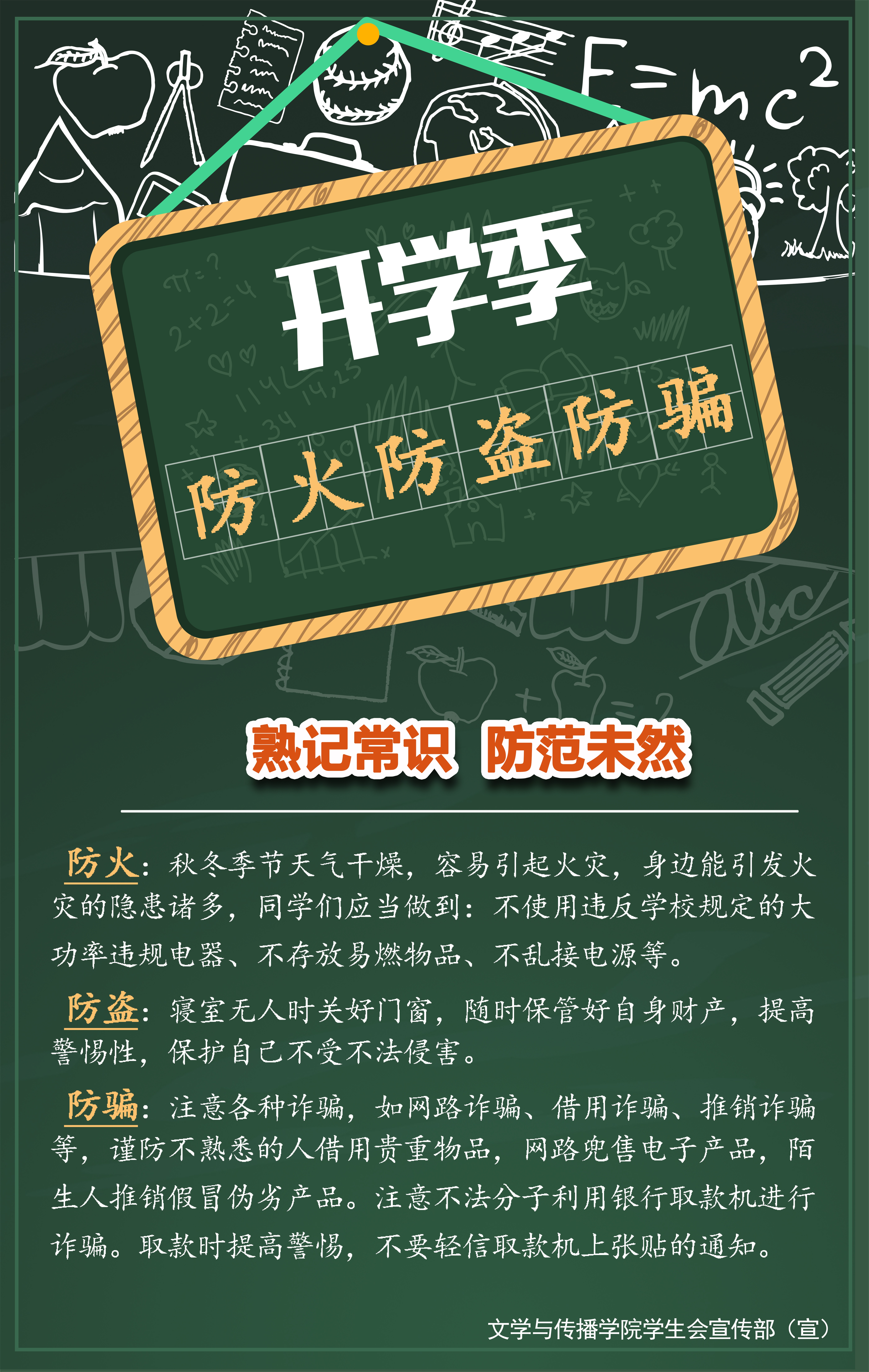 时值新生开学季,为进一步强化学生的安全意识,我院开展“防火防盗防骗”相关知识普及活动,通过对高校相关安全事件资料的收集、分类、整理,我院实行“线上线下一体化”的宣传教育活动。