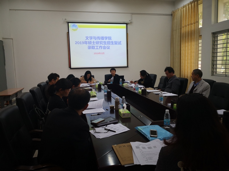3月26日下午,文学与传播学院召开2019年研究生复试录取工作培训会。院领导谢英、杨秋生、刘文波以及研究生复试录取工作领导小组、巡视督查小组、复试专家组成员及工作人员参加会议。会议由谢英院长主持。