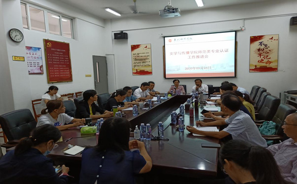9月24日下午,文学与传播学院在学院会议室召开师范认证工作推进会。教务处肖文江副处长、文传学院领导、学院各职能部门负责人、中文系全体教师参加会议。会议由王勇卫院长主持。