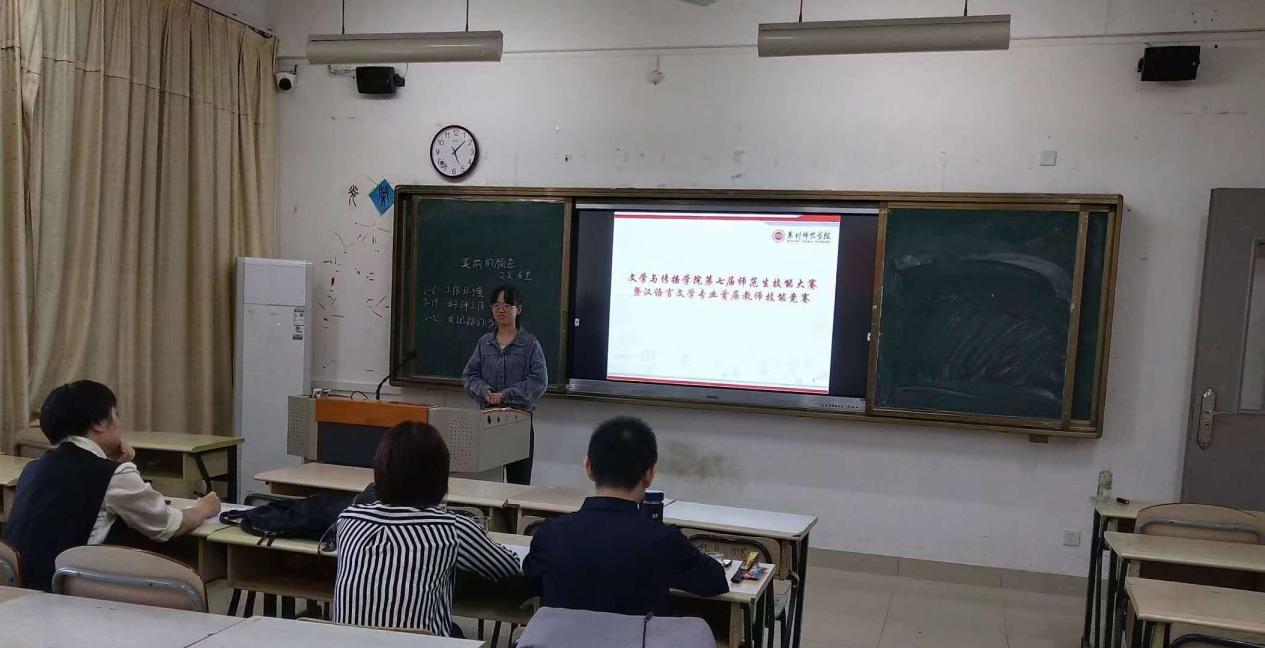 为加强师范生对教师技能的重视,推动师范生教师技能训练工作向纵深发展,文学与传播学院第七届师范生技能大赛暨汉语言文学专业首届教师技能大赛于10月27日下午在俊秀东楼305举行,汉语言文学专业主任王伟教授、副主任李莉副教授,以及汉语国际教育专业主任王曦博士担任评委。