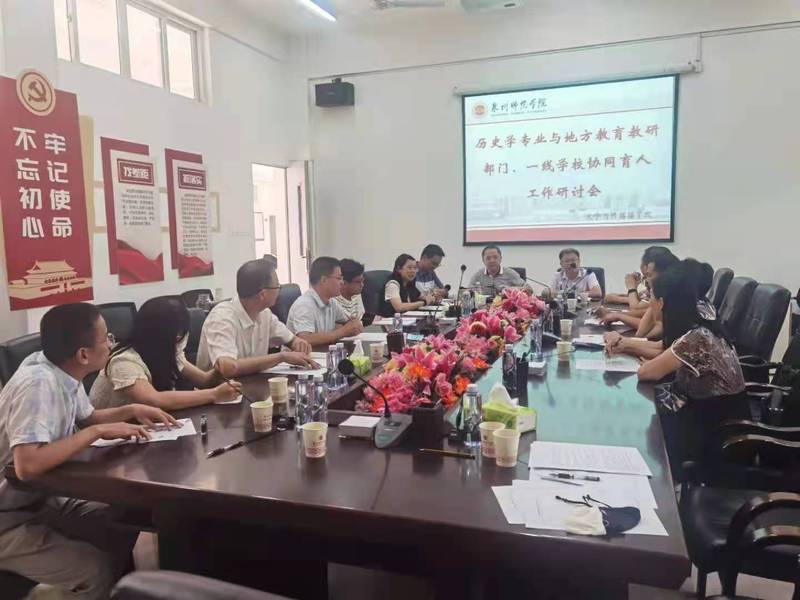 为保证院系与地方教育行政部门和中学建立“三位一体”协同育人机制的协调和有效推进,2021年8月5日,历史学专业与地方教育教研部门、一线学校协同育人工作研讨会在文传学院会议室召开。参加会议的有文传学院副院长刘文波、泉州市教研所专家陈木兴、历史系专业主任刘新慧及部分一线中学教师和历史专业教师等相关人员。