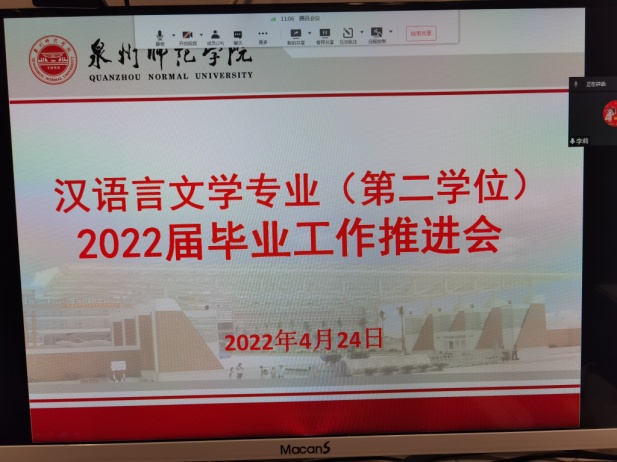 为了落实学校与学院关于毕业季工作的各项安排部署,文传学院中文系依托腾讯会议系统于4月21日、4月24日接连召开两场毕业班工作推进会,中文系主任、副主任,专业骨干教师,以及汉语言文学专业2022届全体毕业生参加。