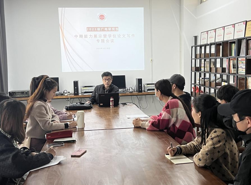 适逢2021级广电研究生开题汇报结束后中期能力展示与学历论文写作的关键时期,根据全国培养广电艺术硕士的指导要求,为保证中期能力展示与学位论文工作的顺利开展,3月16日下午,我院召开了2021级广电研究生中期能力展示暨学位论文写作专题会议。会议由张灿荣教授主持,2021级全体研究生参加了会议。