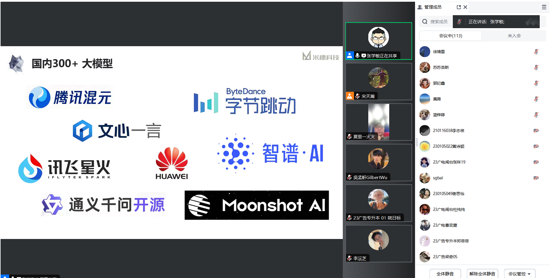 5月23日,文学与传播学院语言与传媒实验中心成功举办了首次AIGC研讨会,主题为《从文字到影像AIGC图文生成助力教学的现况与应用》。本次研讨会特邀北京米穗科技创办人、知名企业讲师张学敏先生担任主讲嘉宾。张学敏先生同时也是北京师范大学人工智能学院、河南大学和西北政法大学新闻传播学院的企业讲师。
