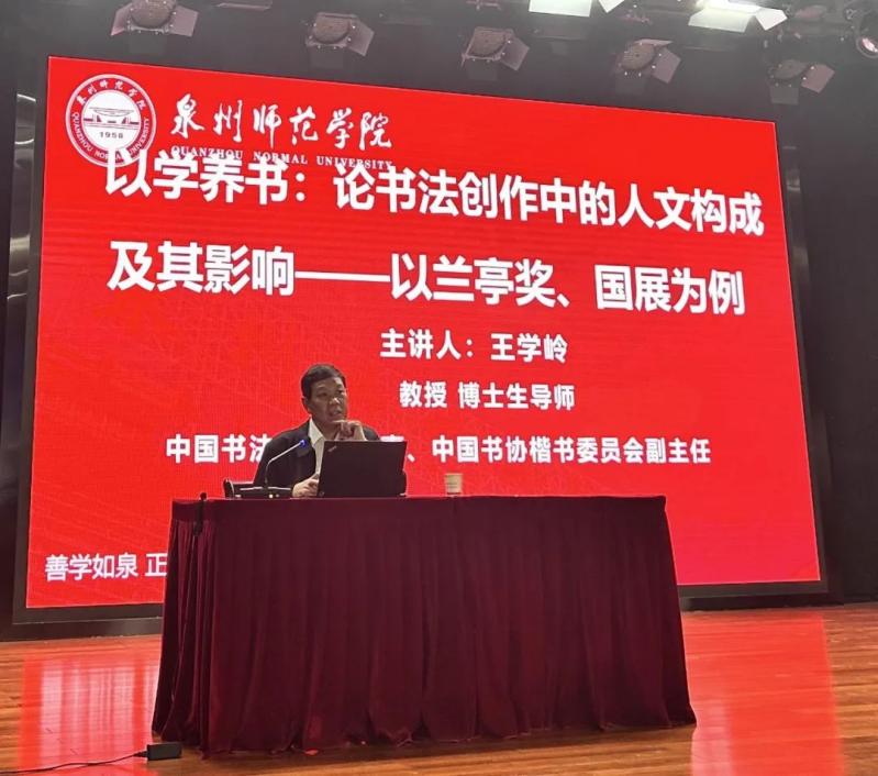 讲座中,王学岭老师还就书法创作的具体技巧给出了实用建议,包括文本内容的选择、纸张的选用、用字的准确性、版本的权威性以及题跋、盖章等细节处理,强调了创作中的每一个环节都不可忽视,都是体现书家学养与态度的关键。