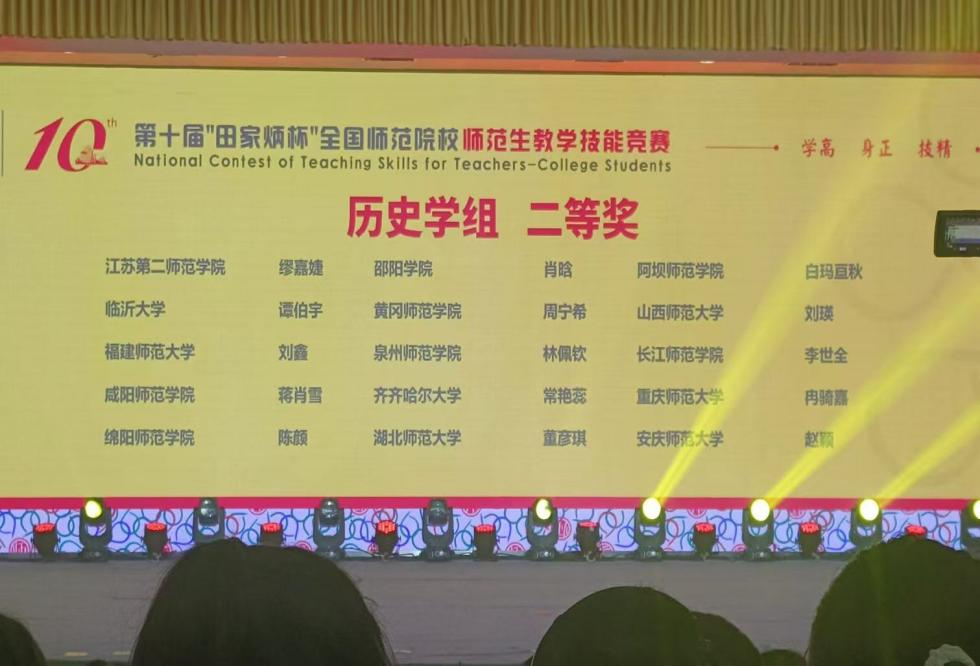 12月1日,第十届“田家炳杯”全国师范院校师范生教学技能竞赛在浙江金华圆满落幕。历史系2021级历史学(师范)专业的林佩钦同学成功进入决赛,并凭借扎实的基本功和出色的现场表现,荣获历史学组全国二等奖。
