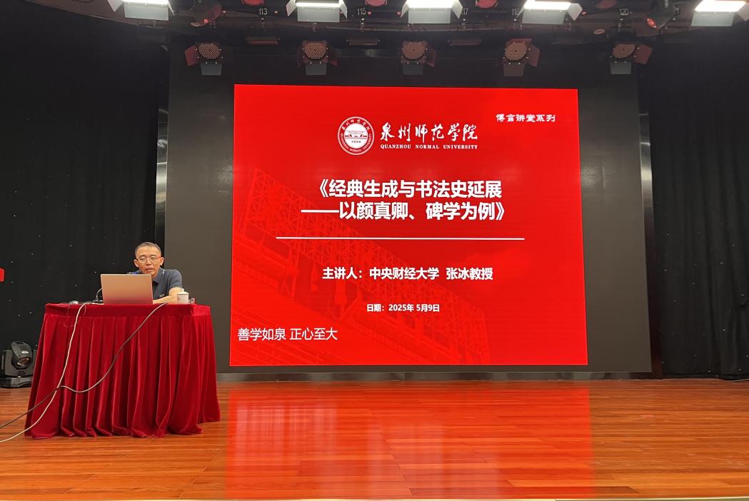 2025年5月9日,中央财经大学文化与传媒学院艺术系主任张冰教授在我院俊秀东楼二楼演播厅带来了题为《经典生成与书法史的延展——以颜真卿、碑学为例》的学术讲座。讲座由文学与传播学院书法研究生部副主任欧阳军老师主持。