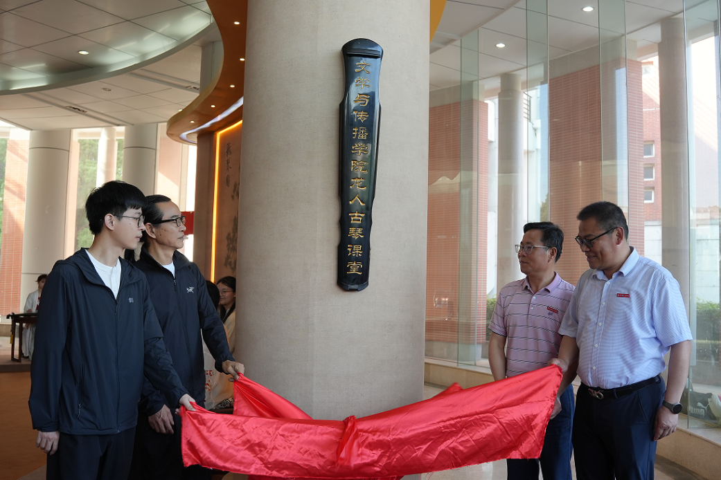 在热烈的掌声中,林建全书记、王勇卫院长、谢建东先生和谢宗煌先生共同为“龙人古琴课堂”揭牌。