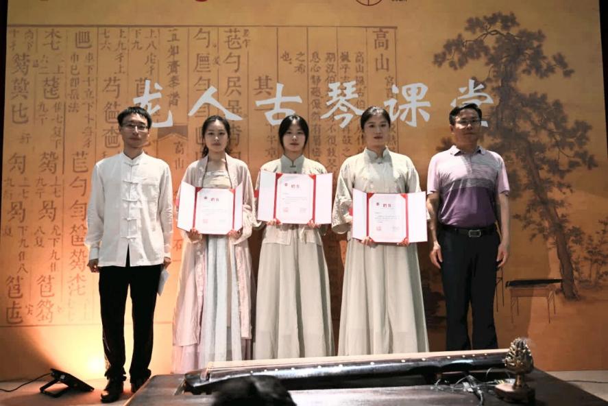 活动开始前进行了吾有古琴社换届仪式,学院党委书记林建全和团委书记陈燕红老师分别为吾有古琴社上一届骨干成员和新一届骨干成员颁发聘书。