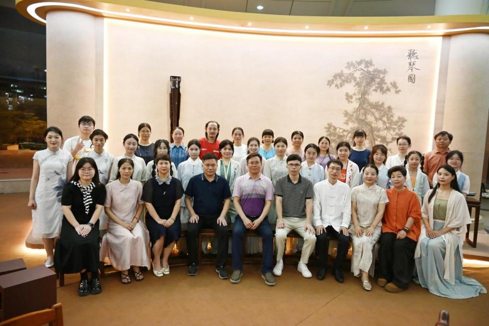 6月13日,由文学与传播学院、龙人古琴研究院共同主办,吾有古琴社、泉州山水古琴院共同承办,儒家茶馆协办的“丝路琴韵,五雅流芳”文学与传播学院龙人古琴课堂教学成果汇报暨2025年“文化和自然遗产日”古琴雅集活动在俊秀圆楼古琴教室成功举办。学院党委书记林建全、团委书记陈燕红、外国语学院正科级组织员许跃民、学院辅导员兼吾有琴社指导老师谢燕娜、学院古琴教师潘贤杰及来自泉州各县市区琴友出席了本次活动。