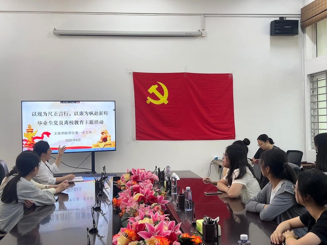 为强化毕业生党员纪律意识与廉洁观念,我院学生第一党支部于6月12日开展“以规为尺正言行,以廉为帆赴新程”毕业生党员离校教育暨专题党课,通过理论学习与实践教育相结合的方式,为 2025 届毕业生党员上好离校前的“政治必修课”。