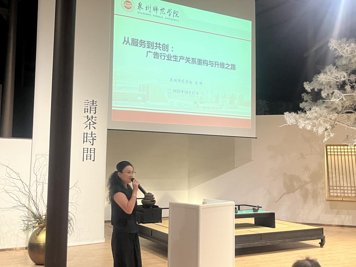 吴玮以《从服务到共创:广告生产关系重构与价值升维》为题,系统阐释了新传播生态下广告业合规经营与价值共创路径,获主办方和学员一致好评。本次授课是我院落实校地合作、推进产学研融合的常规动作。学院将持续组织教师把最新研究成果转化为地方发展资源,服务泉州产业高质量发展。