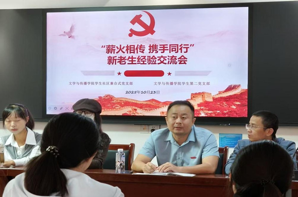 为深入学习贯彻习近平总书记给全国特岗教师代表的回信精神和习近平总书记关于教育的重要论述,帮助2025级新生更快适应大学生活,明确学习方向与目标,做好大学规划,解决实际困难与疑惑,文学与传播学院学生社区兼合式党支部联合文学与传播学院第二党支部于2025年10月23日上午在“一站式”学生社区召开“薪火相传,携手同行”新老生经验交流会。文学与传播学院党委副书记兼纪委书记林端民、文学与传播学院学生第二党支部书记白荣耀、历史学专业高年级学生代表和2025级历史学专业新生参加。