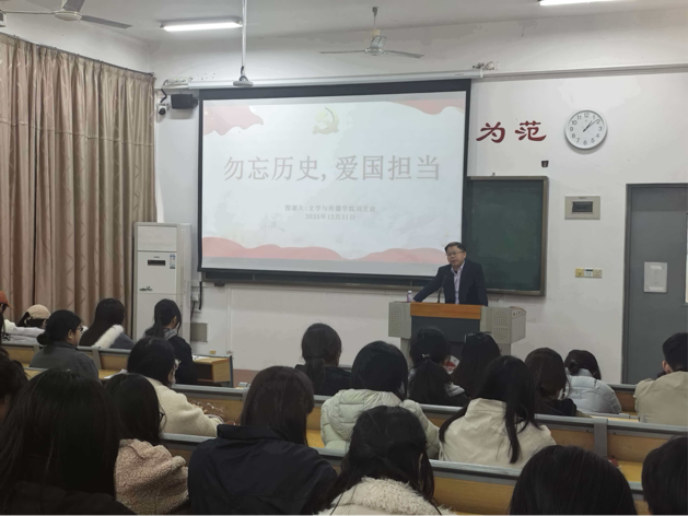 为深化入党积极分子的爱国情怀与使命担当,引导学员从历史中汲取精神力量,2025年12月31日下午,文学与传播学院刘文波副教授以《勿忘历史,爱国担当》为题,为学院党校第35期培训班学员讲授专题党课。