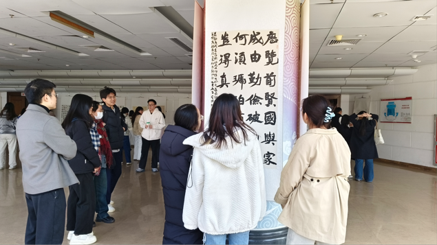 参观过程中,师生们驻足于作品前,由黄显洋老师进行讲解,带领大家细细品味笔墨间的韵味,深化对书法艺术的理解与感悟。大家在欣赏书法创作技巧的同时,也从作品传递的廉洁理念中获得思想启悟。