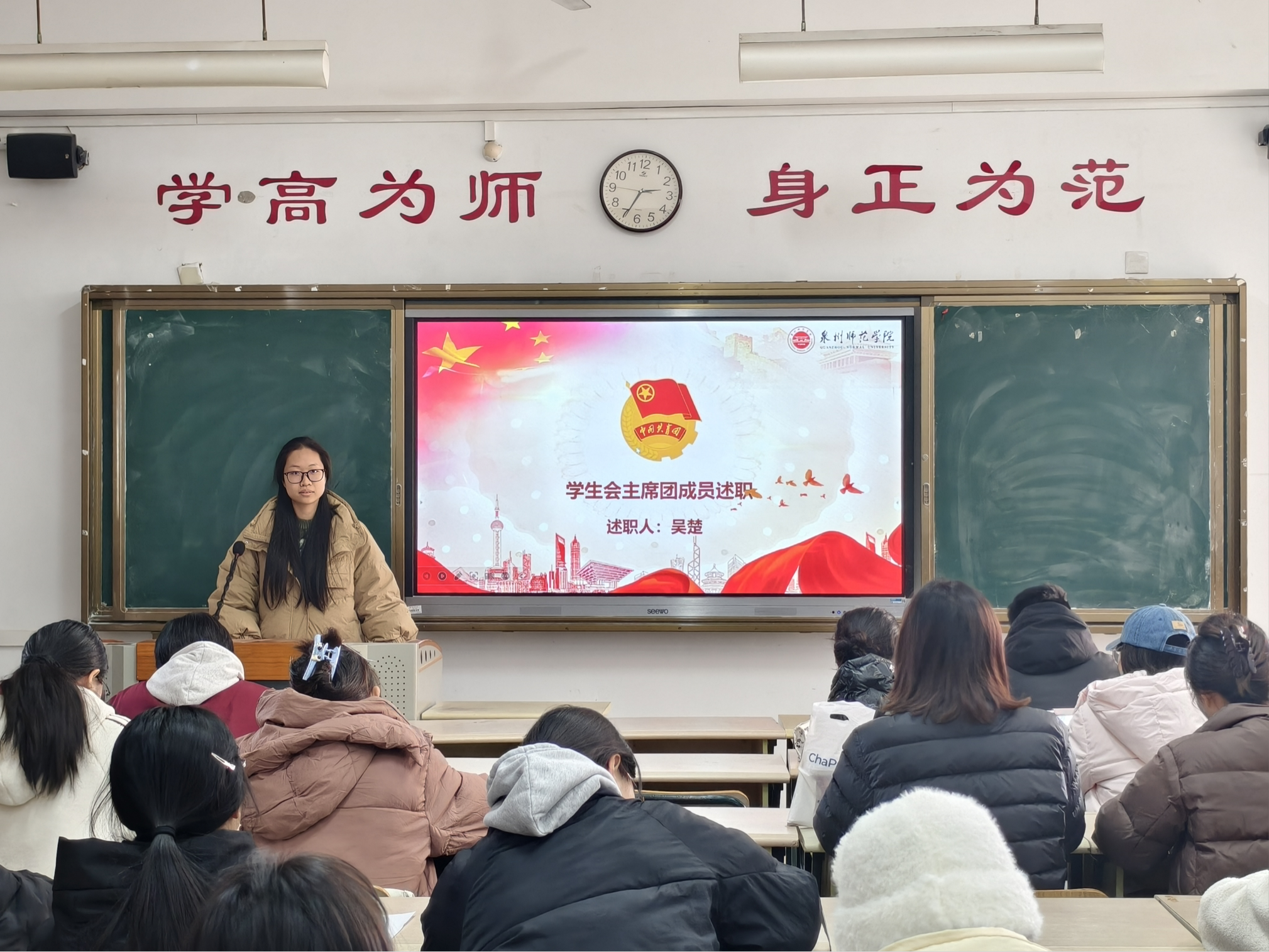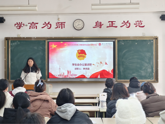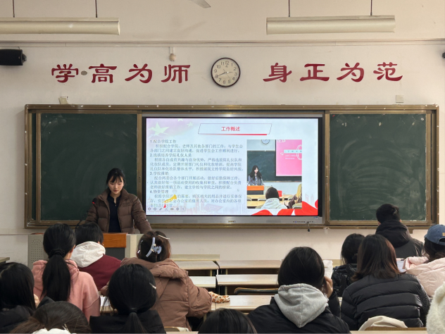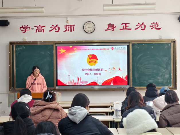 主席团成员和各部门代表依次进行述职报告。各位学生骨干回顾了今年的履职情况,对9月至12月期间策划组织的活动进行了全面总结,对工作开展过程中的亮点与不足进行了总结与反思,明确了下一阶段具体的改进目标和实施方案。本次会议气氛庄重,展现出学生干部求真务实、锐意进取的精神品质。