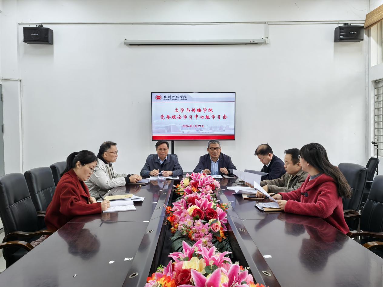 2026年1月29日,文学与传播学院党委理论学习中心组召开2025年度民主生活会前专题学习会,深入学习领会习近平总书记在中央政治局民主生活会上的重要讲话精神,《中国共产党章程》《中国共产党纪律处分条例》和《中共中央办公厅关于锲而不舍落实中央八项规定精神推进作风建设常态化长效化的意见》《中共英国威廉希尔公司官网纪律检查委员会 中共英国威廉希尔公司官网委员会组织部关于开好2025年度处级以上党员领导干部民主生活会的通知》等有关文件精神,为开好年度民主生活会打牢思想基础。学院党委委员、组织员参加会议。学院党委书记林建全主持会议并作出具体工作部署。