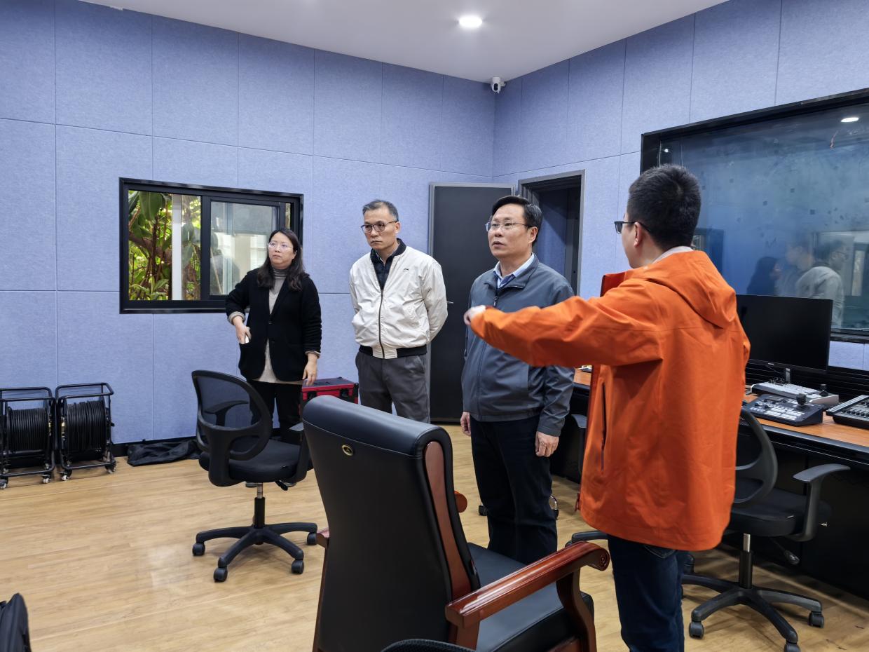 检查组实地走访了呈辉演播厅、网络直播实训中心、摄影棚、录音室等教学实践场所,重点查看了设备运行状态、安全管理措施及使用记录台账,并就实验室日常管理、资源优化利用等问题与相关教师进行了现场交流。