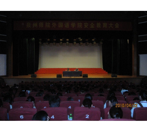 4月22日下午,外国语学院响应校党委关于建设“平安校园”的号召,针对多数学生缺乏社会经验、防范意识薄弱的问题,在陈祖昌大礼堂召开了全院学生安全教育大会,请校保卫处负责人作校园安全知识方面的讲座,会议由该院党总支书记主持。