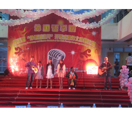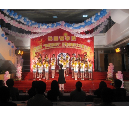 为提高学生学习外语的兴趣和综合运用外语的能力,5月14日晚,外国语学院第五届“外语活动月”开幕式暨“班班有歌声”外文合唱比赛在荣茂楼一楼大厅隆重举行。校党委宣传部部长、学院党政领导出席开幕式。