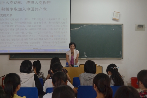 开班仪式结束后,李丽雪书记开讲培训班的第一课——题为《端正入党动机,以实际行动加入党组织》,主要内容为“入党基本条件”、“端正入党动机”、“遵照入党程序”、“入党常用文书的规范写法”以及“以实际行动争取加入党组织”等五个问题。最后,书记鼓励同学们要按照党的标准身体力行,以实际行动证明自己,争取早日加入党组织。