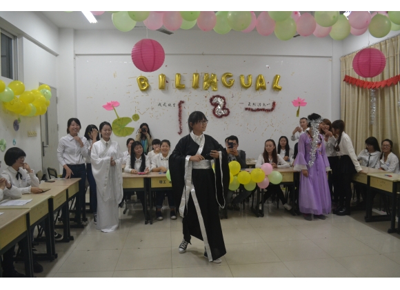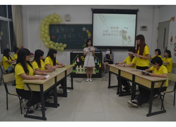 据悉,各个班级都积极认真地筹备参与,活动教室被布置得独具匠心且贴合主题,活动内容更是形式多样、丰富多彩。14级经英1班声情并茂的诗歌朗诵——《有一种力量叫廉洁》,深深地打动了在场的每个人;13双语2班的《轻松一刻》则运用了电视剧经典桥段搭配幽默风趣的配音,讽刺了一路水涨船高的房价问题,让人捧腹的同时也彰显出了廉洁从政对于民生的重要性;而13级英教4班的《非“廉”勿扰》与13级经英1班的《有路大家走》两个特色小品,更是紧密结合时事,突显了本次活动主题。