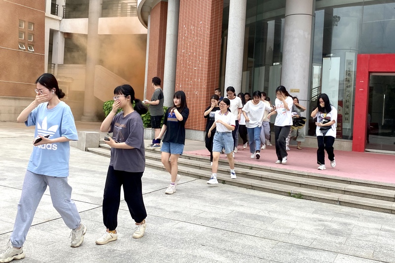 应急疏散演练是学校安全教育的重要组成部分。为提高全体师生处理突发事件的能力,加强师生对消防安全的重视程度并提高对消防知识的掌握能力,5月20日下午三时许,我院于俊秀外文楼前广场组织学生开展应急疏散演练。